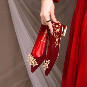 Wedding shoes spring women’s red Xiuhe suit bridal shoes new niche high-end toasting thick heels flat shoes