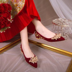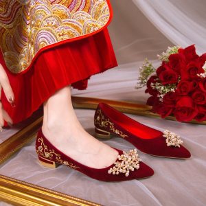 Wedding shoes spring women’s red Xiuhe suit bridal shoes new niche high-end toasting thick heels flat shoes